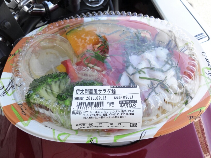 近くのHugaというスーパーで弁当を買って、タンクをテーブル代わりにランチと洒落込んだ
