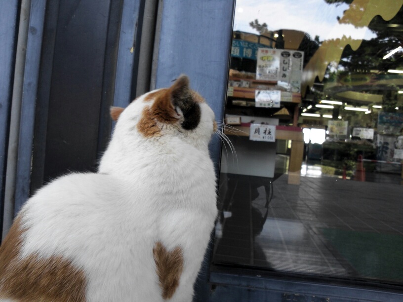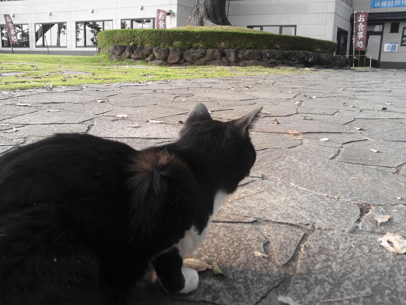 食後白黒の猫と遊んでいるとナイスミドルな夫婦がやって来て猫と一緒に談笑