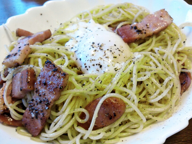 ブラックペッパーをたっぷりかけて温玉をon
