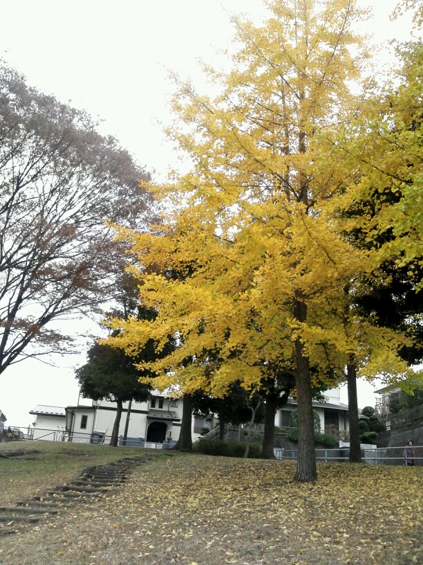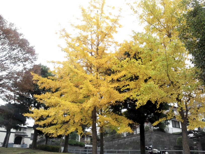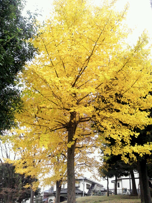 わざと細い住宅街の道に入って行ったら、小さな公園の銀杏が目に留まる