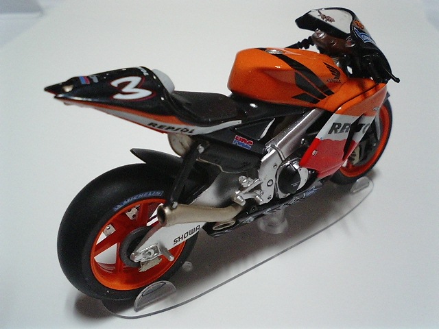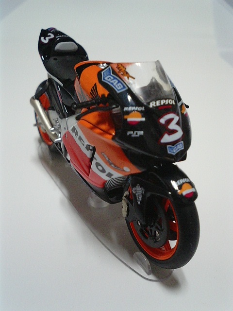 No.3は05年にM.ビアッジが乗っていたもので、まぁ優勝はしてないんだけどね(汗)でもレプソルホンダの211Vは去年ニッキー・ヘイデンが乗って優勝したんだよ。だからどうしても「レプソルカラー」が欲しかったんだけど・・・今になって他のやつも欲しくなってきたw