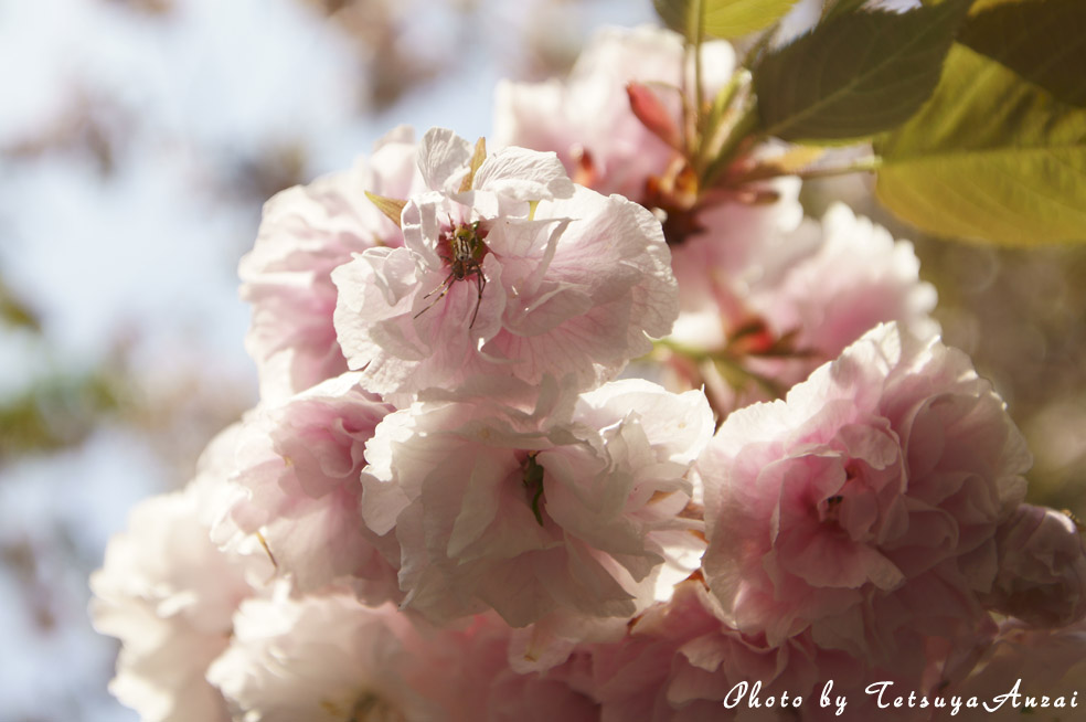 仕方なく歩いていると葉桜になってはいましたがとても綺麗に咲き誇る八重桜が