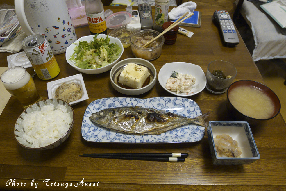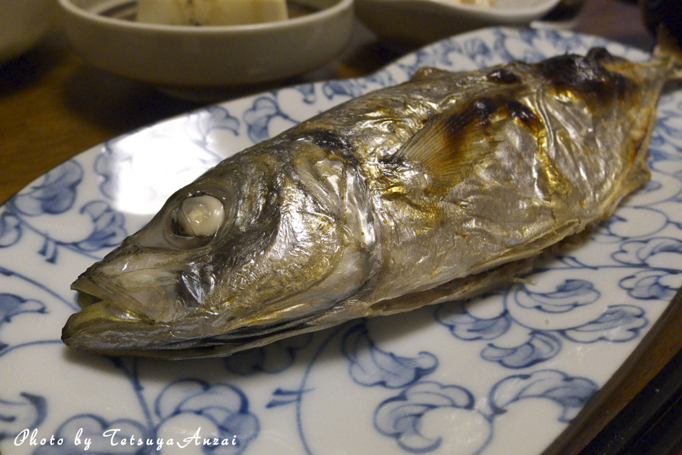 鯵の塩焼きは大好きな心臓を捨てないように気を付けながら内蔵を出し、適当に塩をまぶしてinグリル