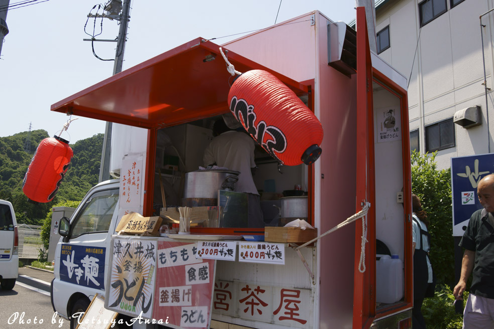 412号沿いにあるセブンイレブンの駐車場に屋台が出ていて、隣にある「せき麺」という製麺屋さんがうどんを売っていた