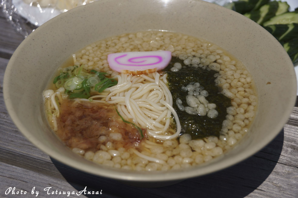 稲庭うどんのように細い麺ですが、かすかにコシがあって美味しい