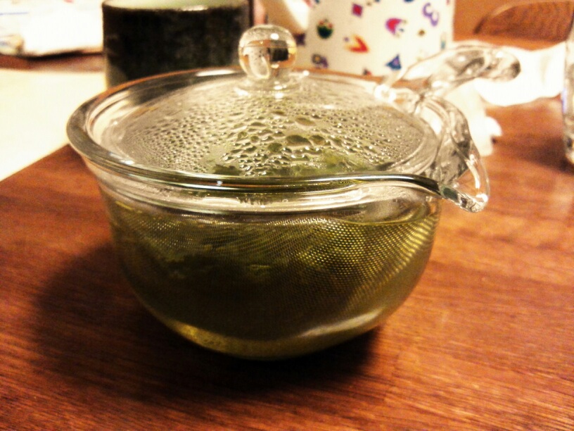 食後は婆ちゃんの遺品のガラス急須を使って緑茶