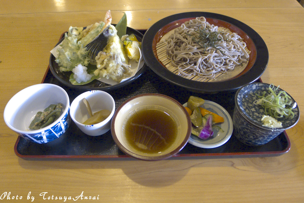 ざる蕎麦一枚では絶対に足りないというくらいお腹が減っていたので、普段絶対に頼まない天ざるそばを注文(天ぷらがあまり好きではないので)