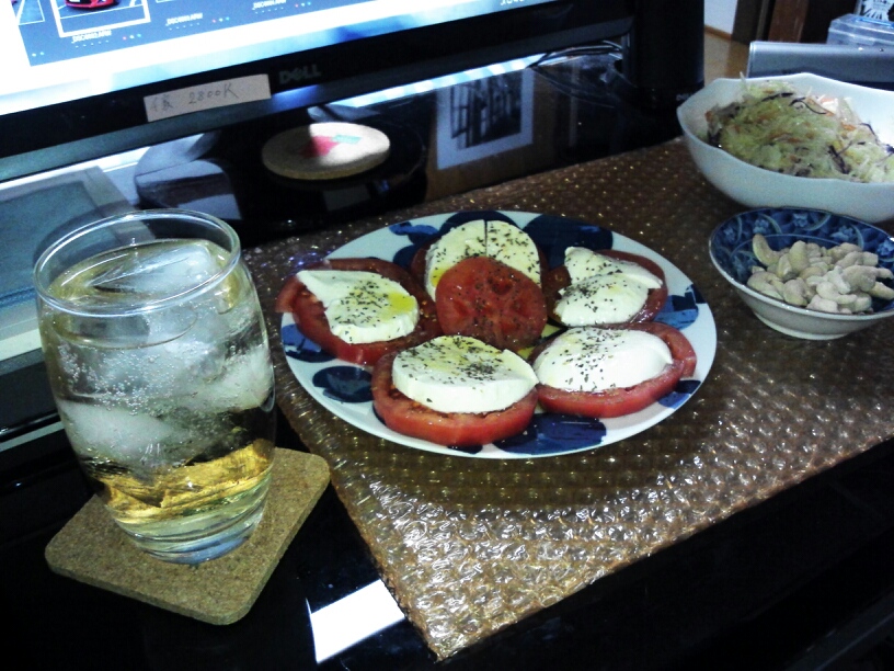 切ってオリーブオイルと塩、バジルかけるだけだから楽ちんだよ(笑)