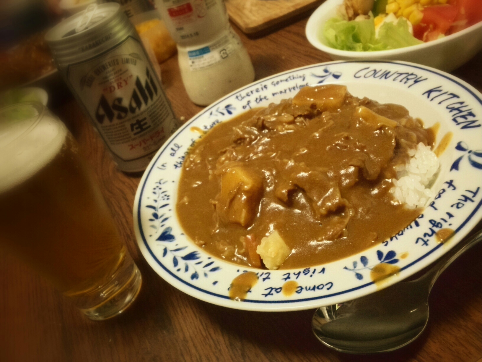 さて、今日は実家でカレーとビールでした。